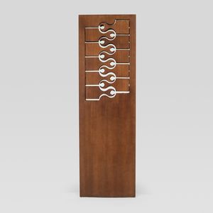 189x58 cm. Italia, anni 70 appendiabiti in legno e vetro specchiato. Bibliografia.: Design per Abitare arredi [..]