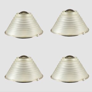 d. 38 cm. Italia, anni 70-80 quattro lampade da soffitto mod. Egina in vetro satinato con lente d'ingrandimento [..]