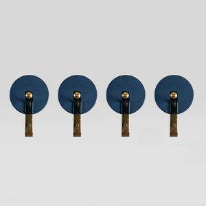 15x10 cm. anni 50 set di quattro appendiabiti in vetro azzurro ed ottone