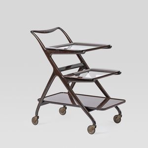 88x73x56 cm. Italia, anni 50 carrello portavivande mod. 65 in legno e vetro trasparente. Bibliografia: Ico Parisi [..]