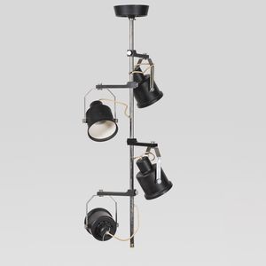 h. 110 cm. anni 70 lampada a sospensione in acciaio e metallo verniciato