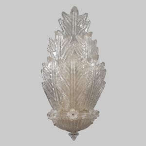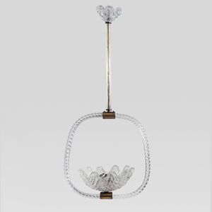 90x64 cm. Murano, anni 40 lampada a sospensione in metallo e vetro trasparente, lievi difetti