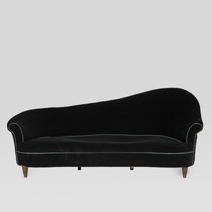 93x218x88 cm. Italia, anni 50 divano in legno e tessuto imbottito