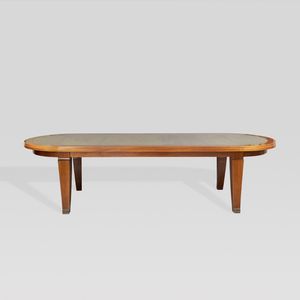 tavolo 77x300x112 cm. - sedie h. 100 cm XX Sec. tavolo con otto sedie in mogano, cristallo e tessuto imbottit [..]