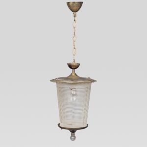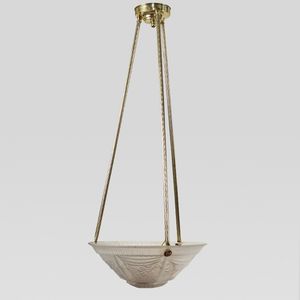 85x35 cm. Francia, anni 30 lampada a sospensione in vetro satinato ed ottone, difetti