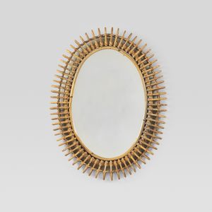 58x45 cm. anni 60 specchio da parete ovale in rattan