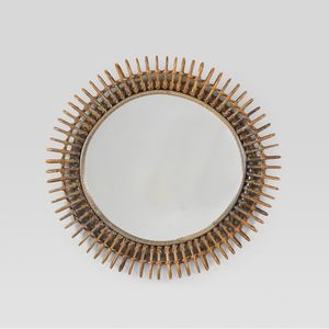 d. 56 cm. anni 60 specchio da parete circolare in rattan