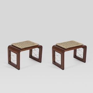 40x60x35 cm. anni 40 coppia di sgabelli in legno e corda intrecciata