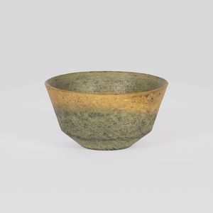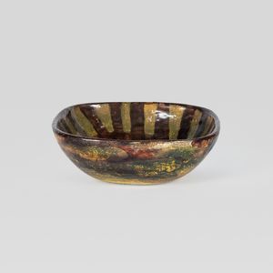 7,5x14 cm. Italia, anni 60 coppetta in ceramica policroma, firmata