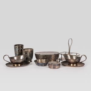 misura massima 7x20,5x12,5 cm. Italia, anni 60 set di oggetti per la tavola in alpacca argentata, marchio della [..]