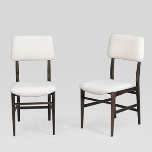 90x50x43 cm. Italia, anni 50 coppia di sedie in legno e tessuto imbottito