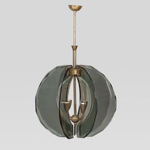 74x46 cm. Italia, anni 60 lampada da soffitto in vetro fumè e ottone