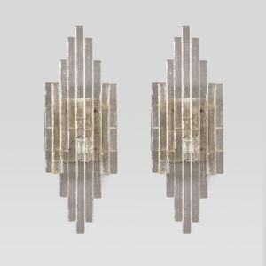 50x18x10 cm. Italia, anni 70 coppia di lampade da parete mod. Linea in vetro trasparente e acciaio