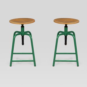 55x32x32 cm. anni 70-80 coppia di sgabelli girevoli con poggiapiedi , metallo verniciato e legno