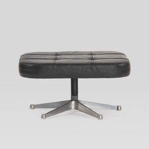 38x75x64 cm. anni 70 poggiapiedi in acciaio e pelle imbottita