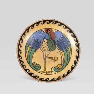 d. 21 cm. Roma, anni 20 decorato in policromia, marchio della produzione, difetti