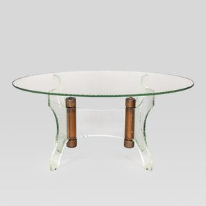 43x95x53 cm. anni 40 tavolo basso in vetro martellato e legno