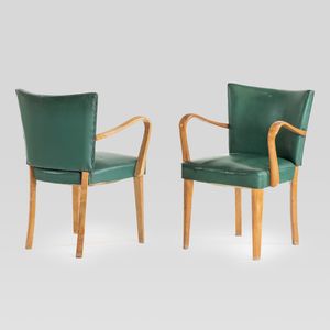 80x58x50 cm. anni 40 coppia di sedie in legno e similpelle imbottita