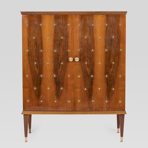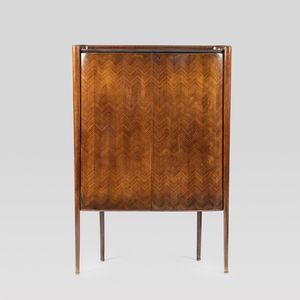 225x108x50 cm. Italia, anni 50 mobile a due corpi in legno, vetro ed intarsi in ottone Bibliografia Paolo Buffa [..]