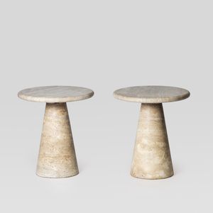 48x44 cm. anni 70 coppia di tavolini in travertino