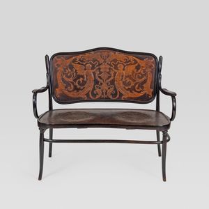 divano 100x117x48 cm. Austria, primi '900 divano, quattro sedie e due poltrone in legno curvato , marchi ed etichette [..]