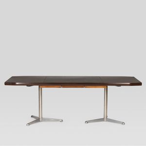74x218x89 cm. Italia, anni 60 scrivania in legno, pelle ed alluminio