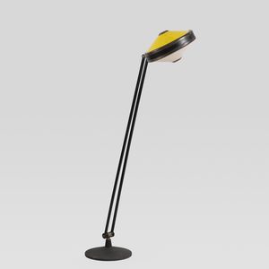 h. 154 cm. Italia, anni 60 lampada da terra mod. 4067 in ottone, metallo verniciato e perspex giallo e bianco, [..]