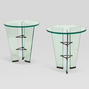62x56,5 cm. Italia, anni 40 coppia di tavolini in vetro trasparente ed ottone