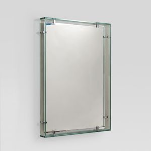 80x58x6 cm. Italia, anni 60 specchio da parete mod. 2014 in cristallo molato, vetro specchiato ed ottone niellato [..]