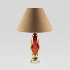 55x38 cm. anni 50 lampada tavolo in vetro sommerso nella tonalitŕ del rosso e del giallo, completa di paralume [..]