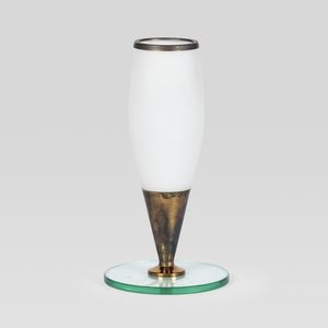 39x20 cm. anni 40 lampada da tavolo in ottone, vetro trasparente e vetro lattimo