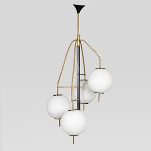 110x55 cm anni 60 lampada a sospensione in ottone, vetro lattimo e metallo verniciato