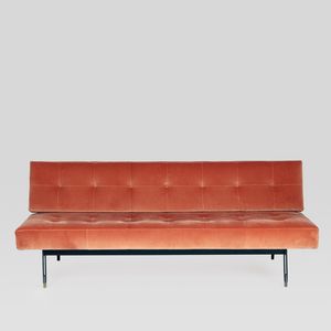 73x190x70 cm. Italia, anni 50 divano mod. 872 in metallo verniciato, legno e tessuto imbottito Bibliografia: [..]