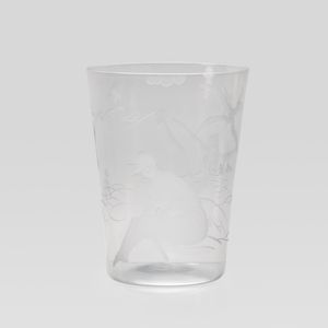 25x19 cm. Murano, anni 30 vaso in vetro trasparente soffiato ed inciso con figure di bagnanti