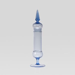 h. 35 cm. Murano, 1959 compostiera con tappo mod. 4740 in vetro trasparente azzurro, firma all'acido, difetti