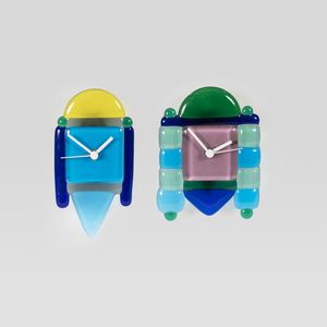 20x10,5- 17x13,5 cm. Murano, anni 90 due orologi da parete in vetro policromo, firmati