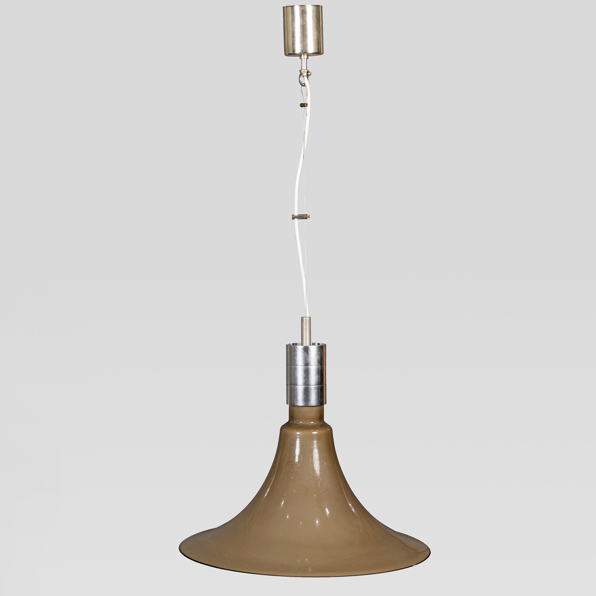 Italia, anni 70 lampada da soffitto in acciaio e vetro colorato