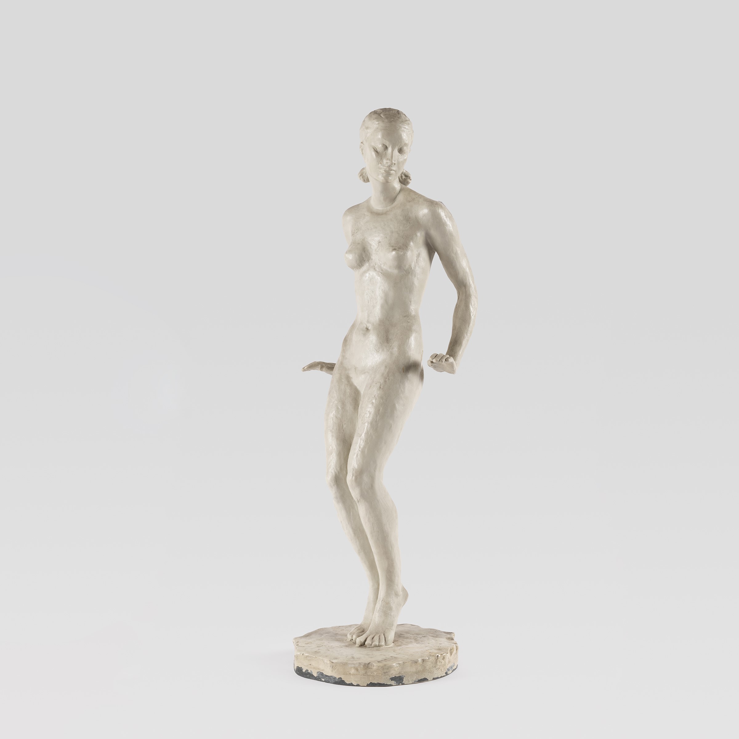Germania, anni 30 scultura in porcellana biscuit raffigurante nudo femminile di ballerina, marchio della produzione