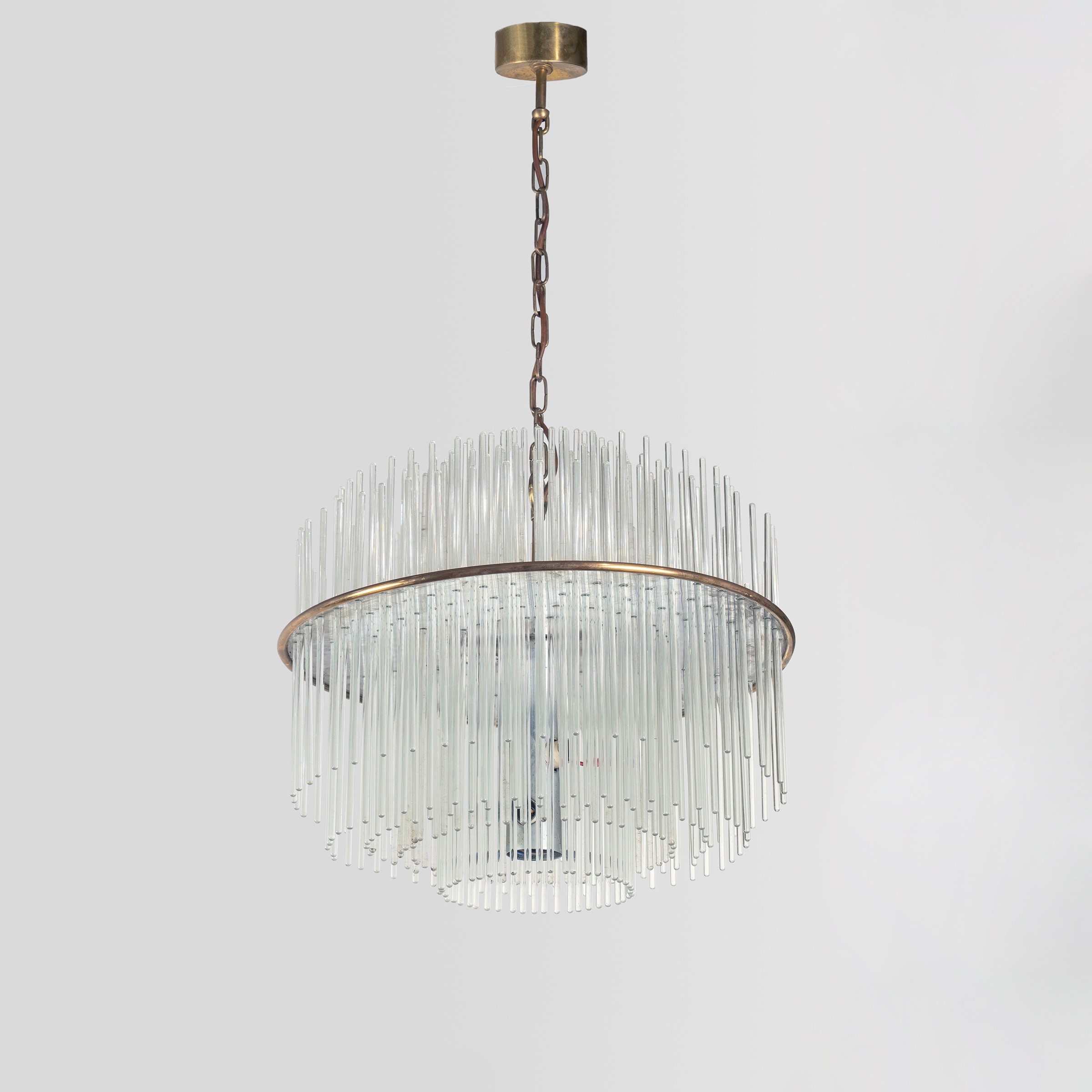 Italia, anni 70 lampada a sospensione in ottone e vetro, etichetta della produzione