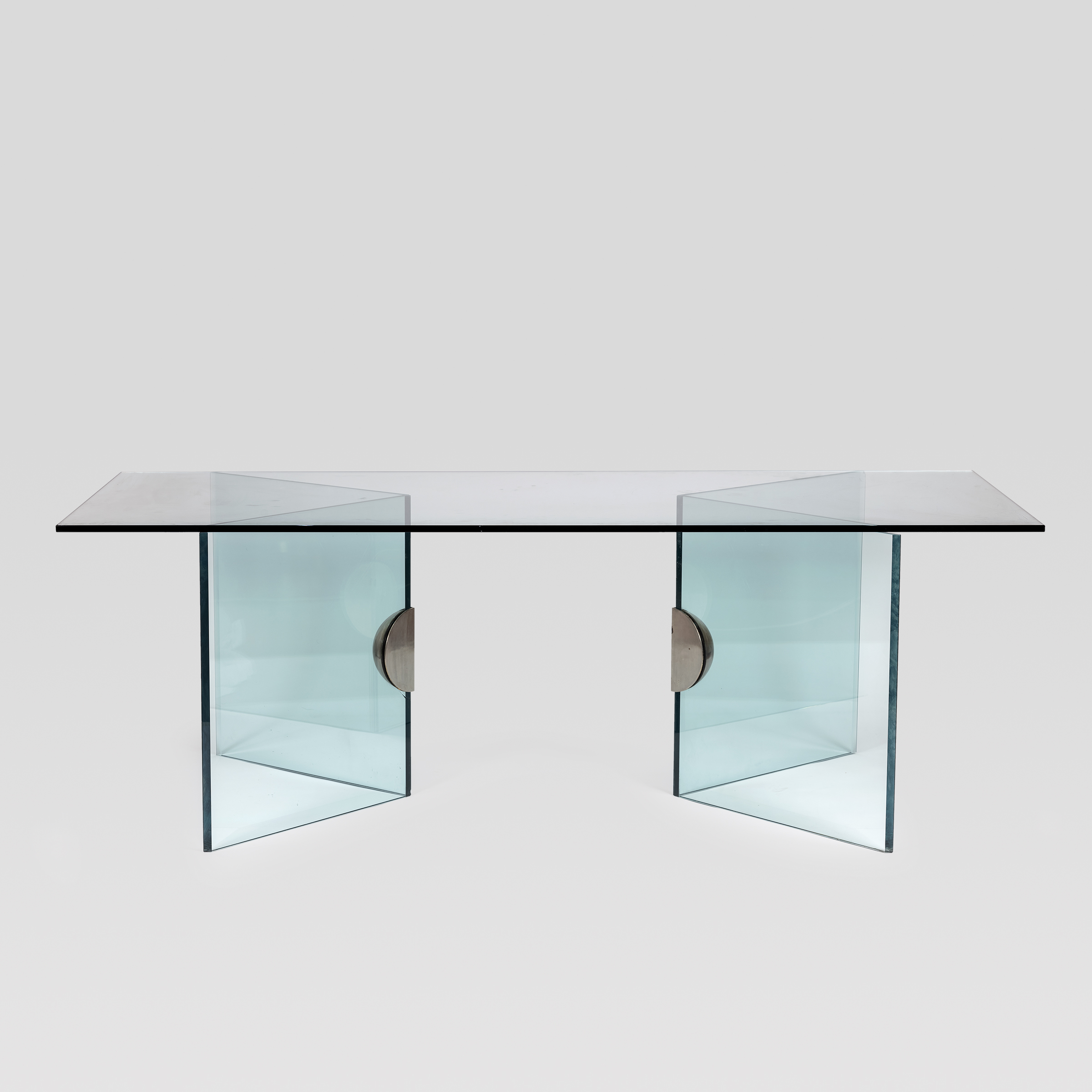 Italia, anni 60 tavolo in vetro trasparente ed alluminio, difetti