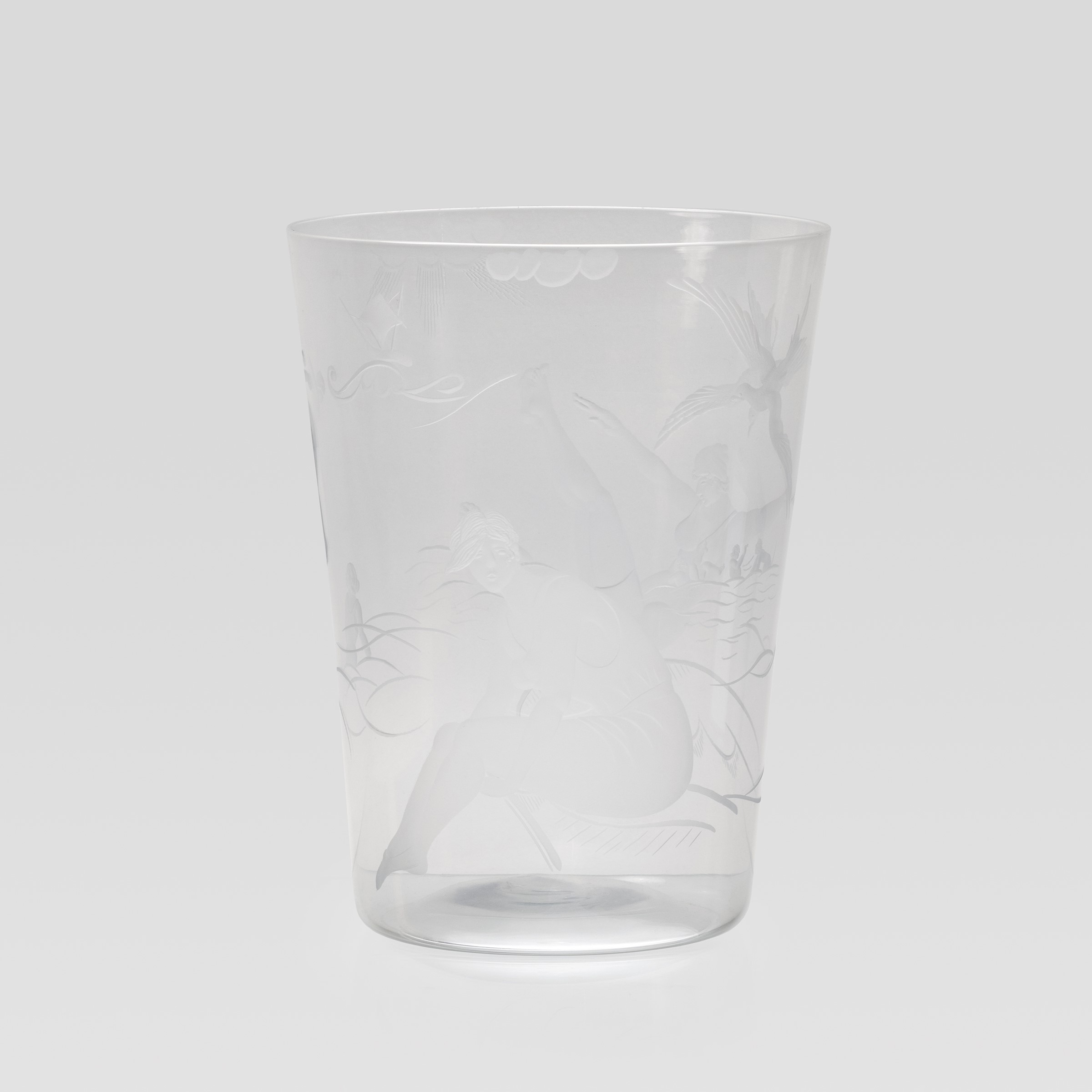 Murano, anni 30 vaso in vetro trasparente soffiato ed inciso con figure di bagnanti