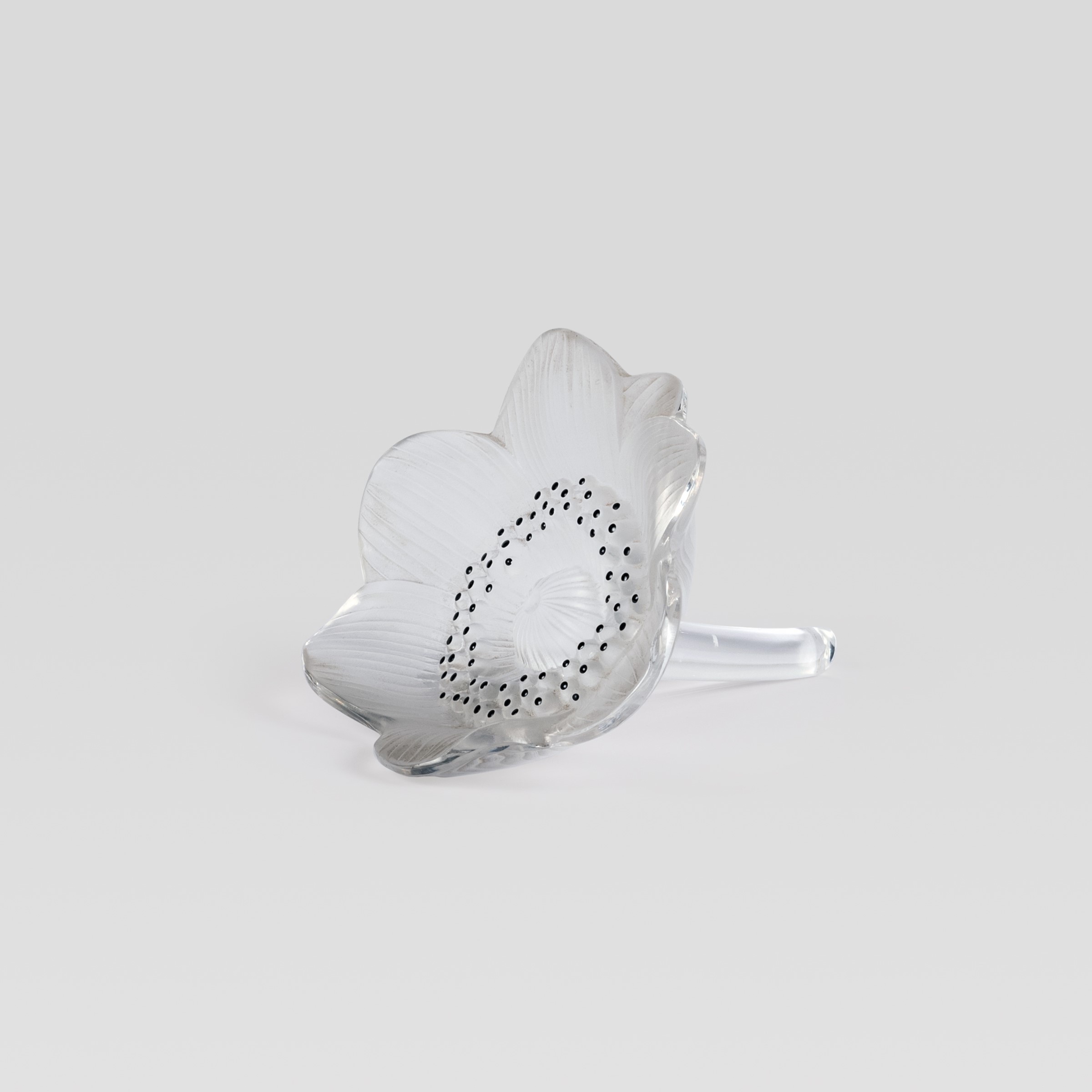 Francia, XX Sec. fiore in vetro trasparente mod. Anemone, marchio della produzione