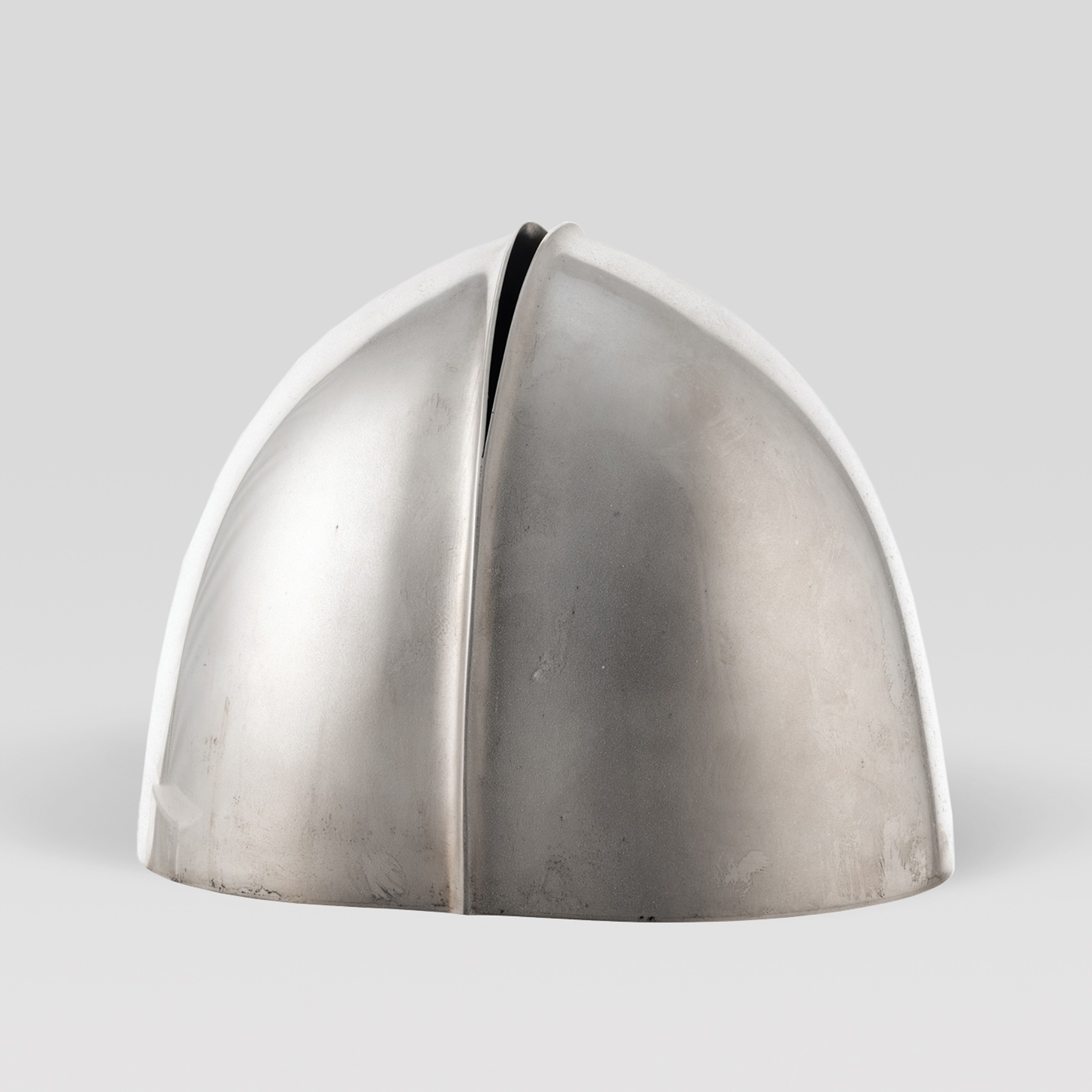 Italia, anni 70 vaso mod. Germoglio in metallo argentato, marchio del produttore