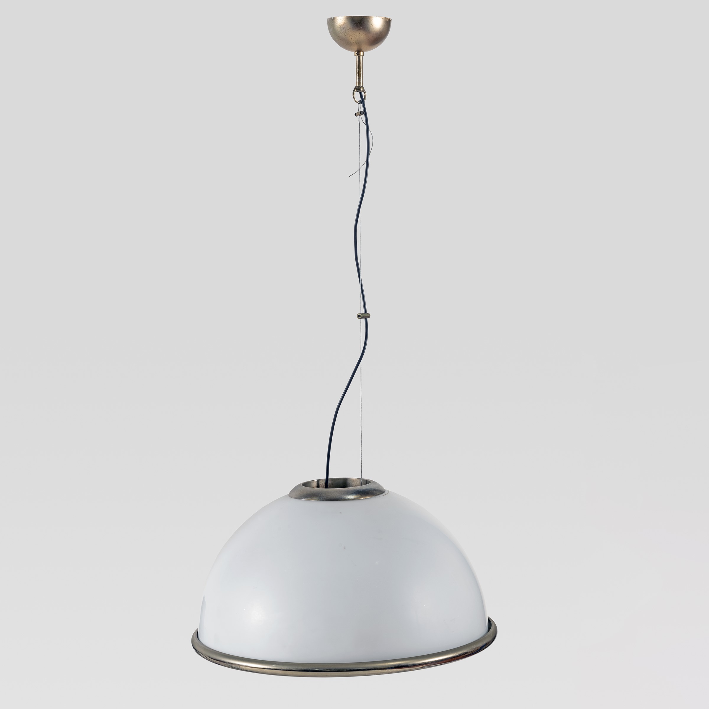 anni 70 lampada a sospensione in vetro opalino e metallo ottonato