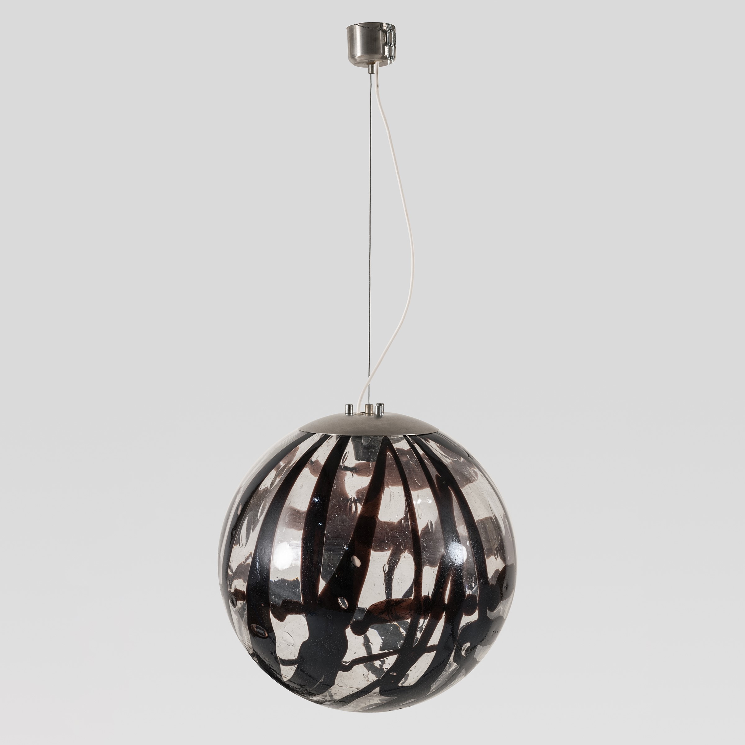 anni 70 lampada a sospensione in vetro soffiato trasparente e colorato e acciaio satinato