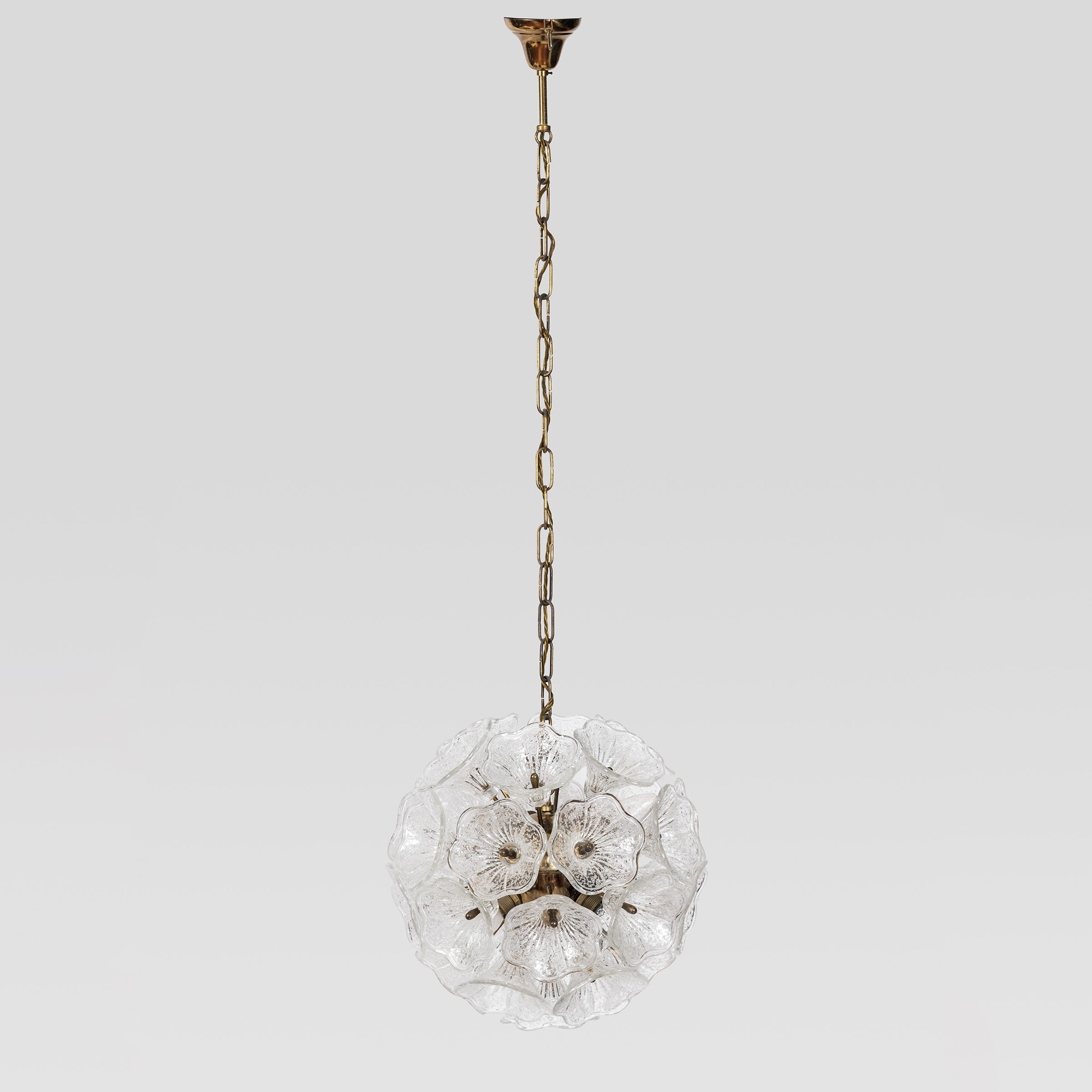 anni 70 lampada a sospensione in vetro stampato ed ottone