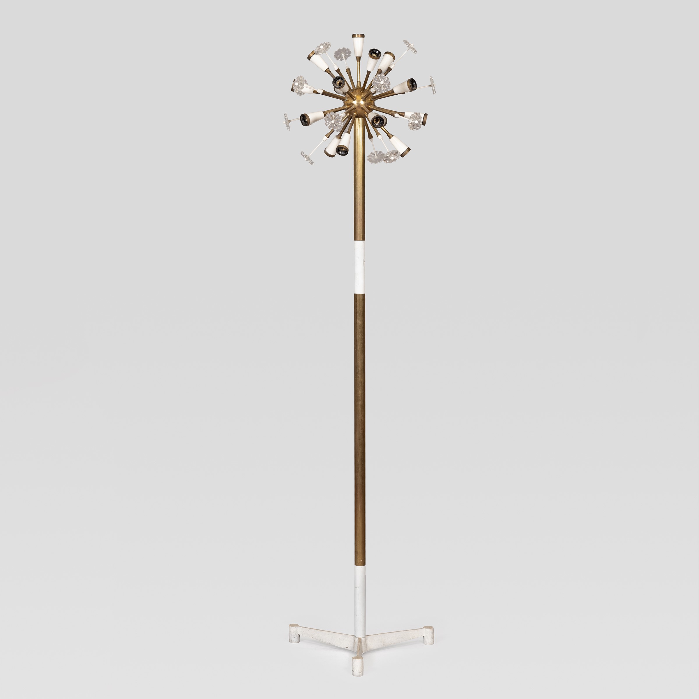 anni 60 lampada da terra in ottone, metallo verniciato e vetro