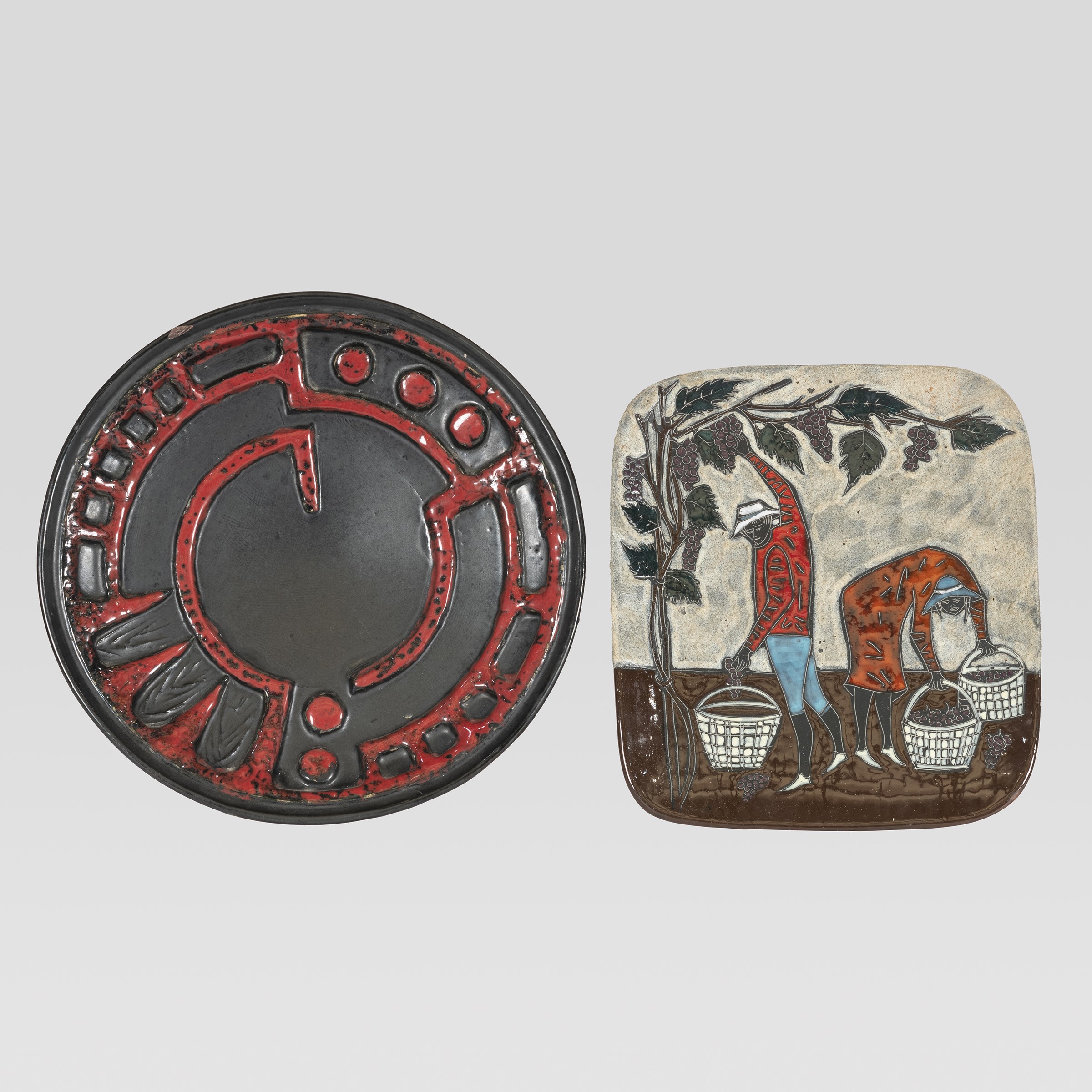 anni 50-60 due placche in ceramica policroma, difetti