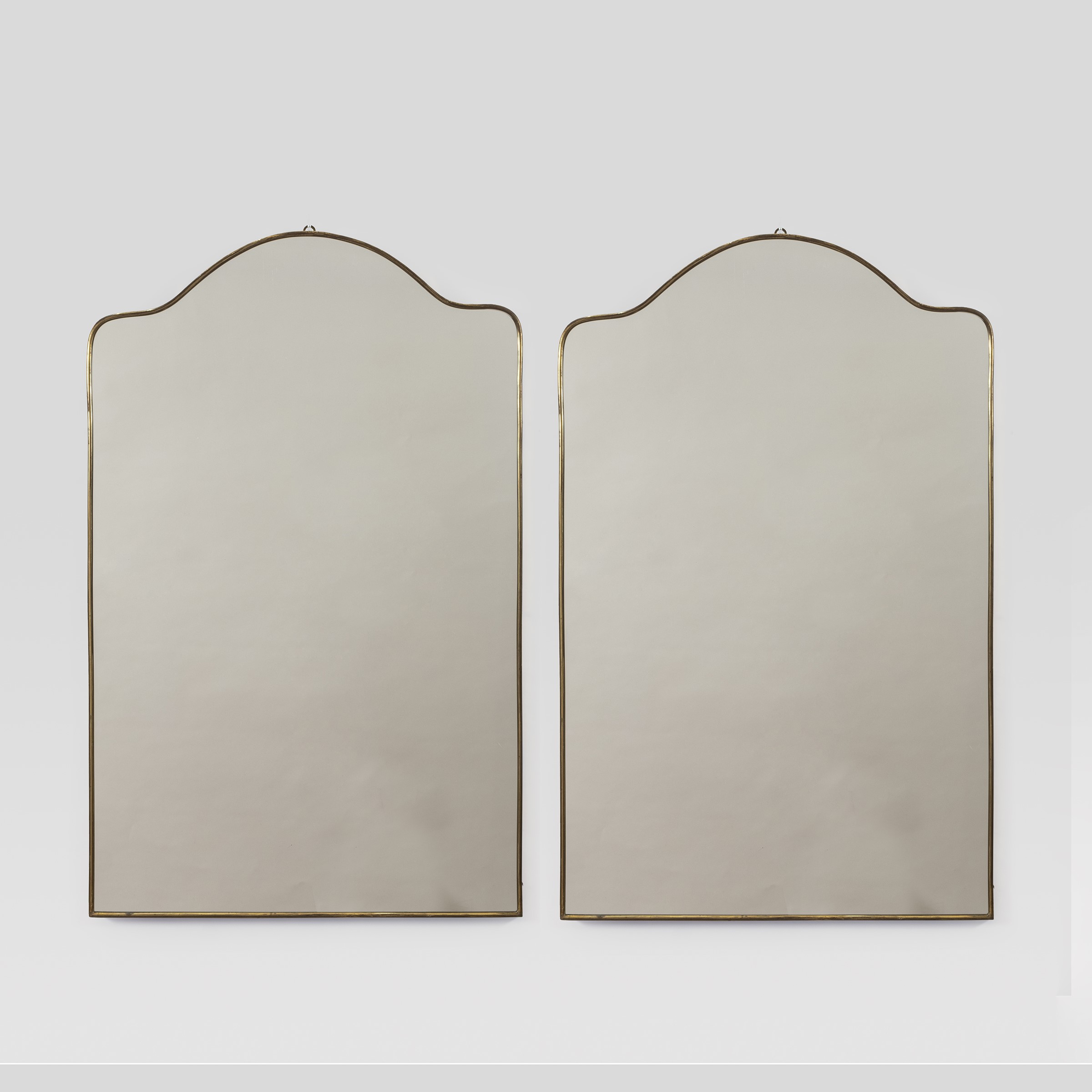 anni 50 coppia di specchi da parete in ottone e vetro specchiato