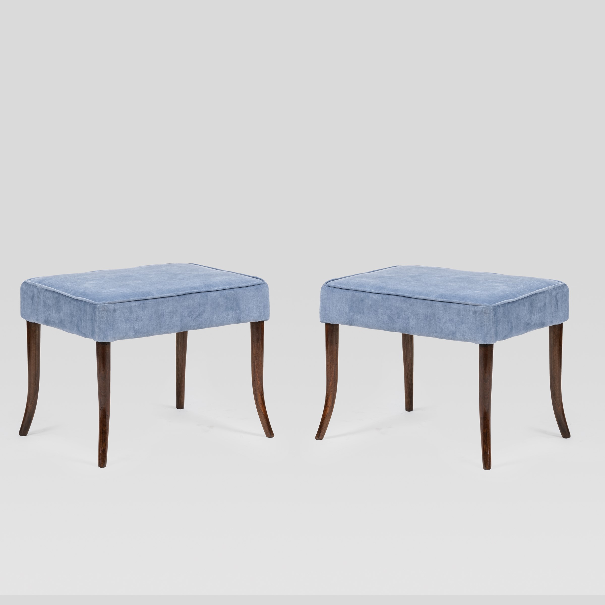 anni 60 coppia di sgabelli in legno e tessuto imbottito